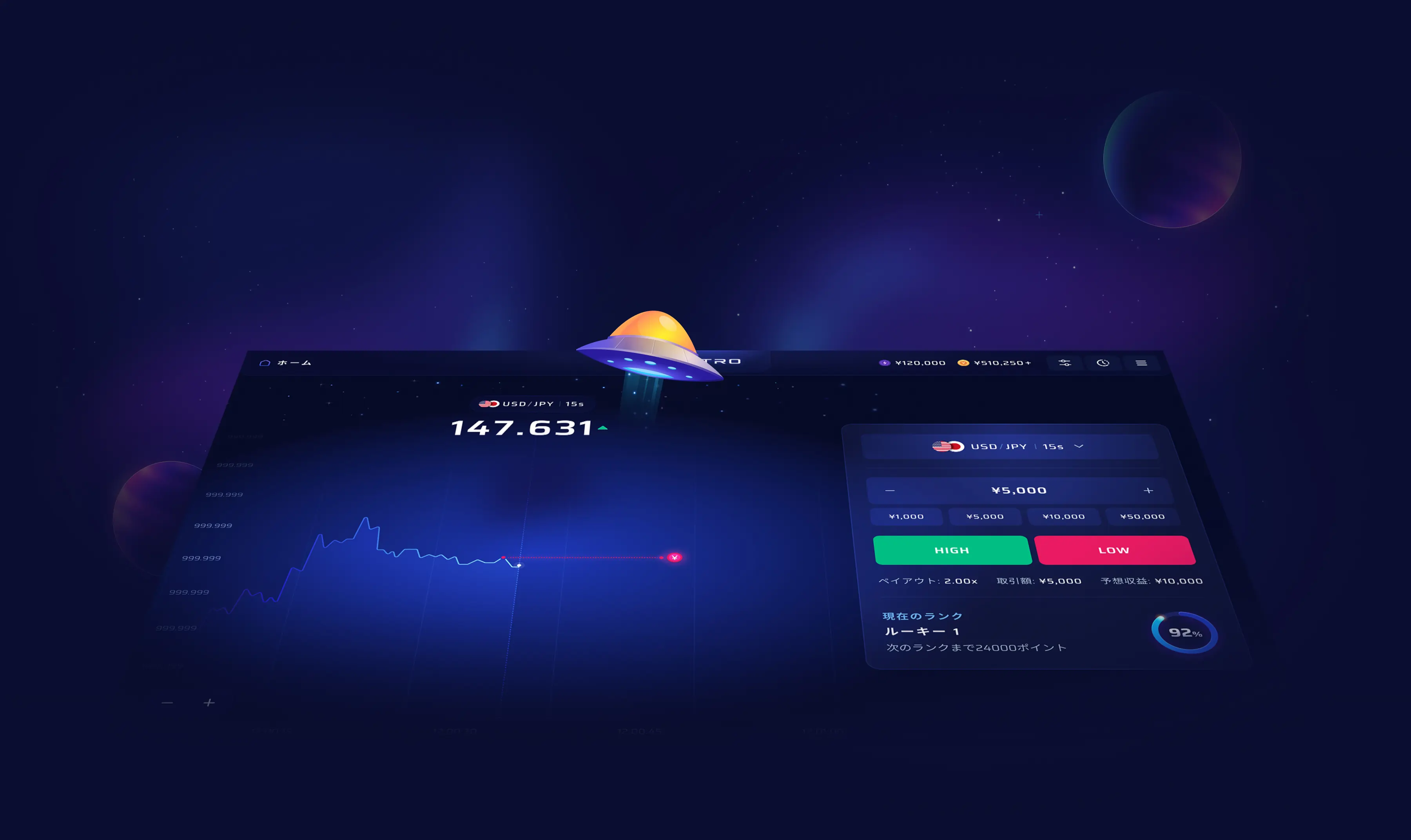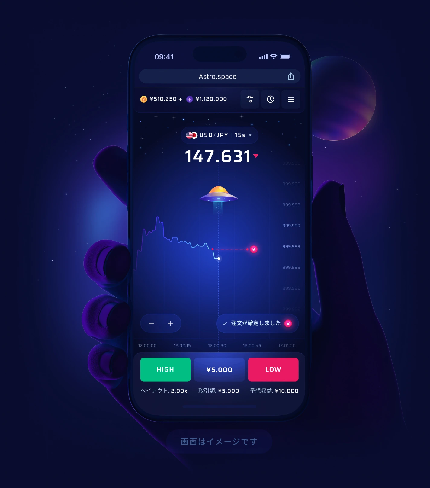 ASTRO(アストロ)は、楽しみながら取引できる、新しいタイプの取引プラットフォームです。近未来をテーマにした遊び心あふれるデザインと、スピーディーな取引環境、充実した報酬制度により、心躍るような唯一無二の体験を実現しました。
